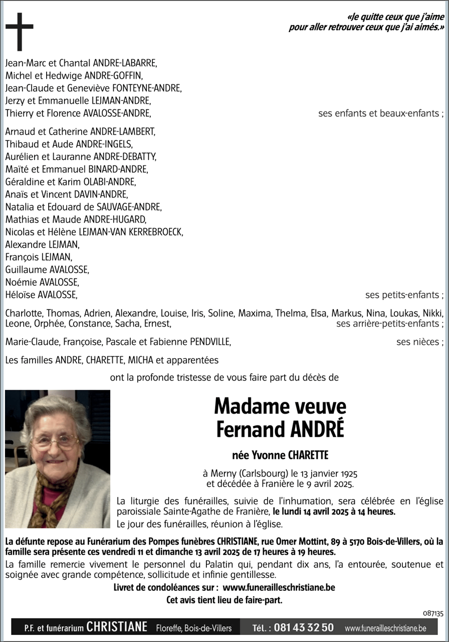 Veuve de Monsieur Fernand ANDRE