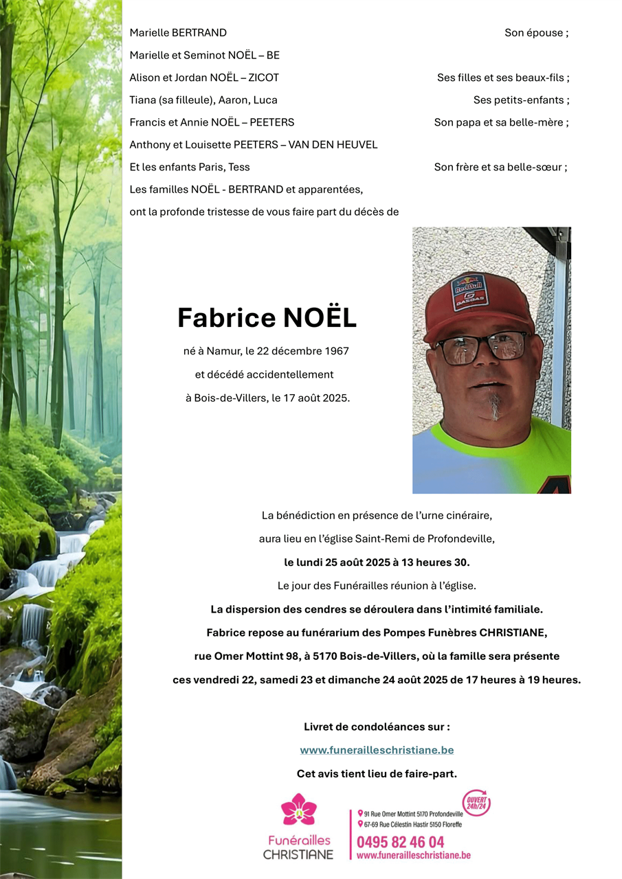 Décédé à Bois-de-Villers (5170) le dimanche 17 août 2025 à l'âge de 57 ans
