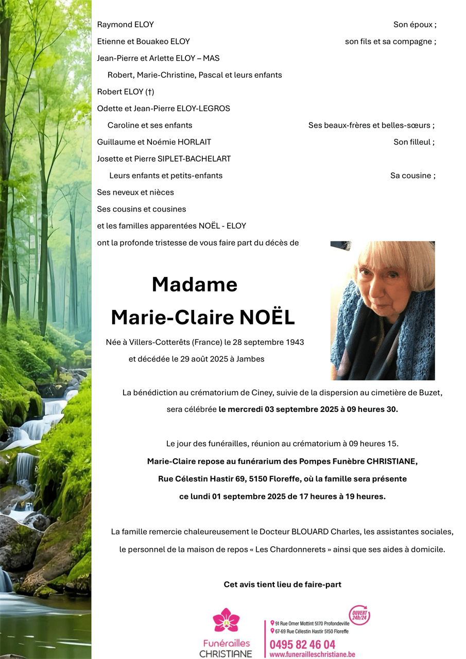 Décédée à Jambes (5100) le vendredi 29 août 2025 à l'âge de 81 ans