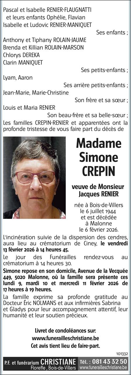 Madame Simone RENIER née CREPIN